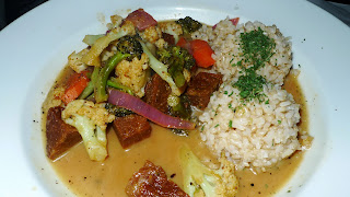 Last night, my mother and I were walking through Soho, and we came upon a pretty large restaurant called Spring Street Natural. I had remembered seeing the name on urbanspoon- so we walked in to take a look. The restaurant wasn't a vegan restaurant (there was meat, eggs, dairy), but more of a healthy upscale restaurant with vegan options. The friendly waitress sat us down at a smooth wood table-booth, and we took a look at the menu. I ordered a tempeh rice vegi stir fry (vegan), and my mom ordered an almond cheddar burger (not vegan). My dish was alright- a very generous portion, a little too generous! The tempeh was very heavy, and I became full extremely fast. My mom disliked her dish, and thought it tasted like a "vegetarian diner burger". I was a little disappointed with the dinner portion, but the dessert made up for it all! For dessert I ordered a scoop of raw vanilla cashew gelato, made by a company called "Organic Nectars". It was so good. I was literally licking the bowl! I looked up the company, and apparently they make a whole line of gelatos, agave nectars, chocolate bars, etc. ! I look forward to trying more from them. Overall, Spring Street was pretty good- but next time I think I'll go for a salad. In my experience, only full vegan restaurants know how to do mock vegan food amazing.